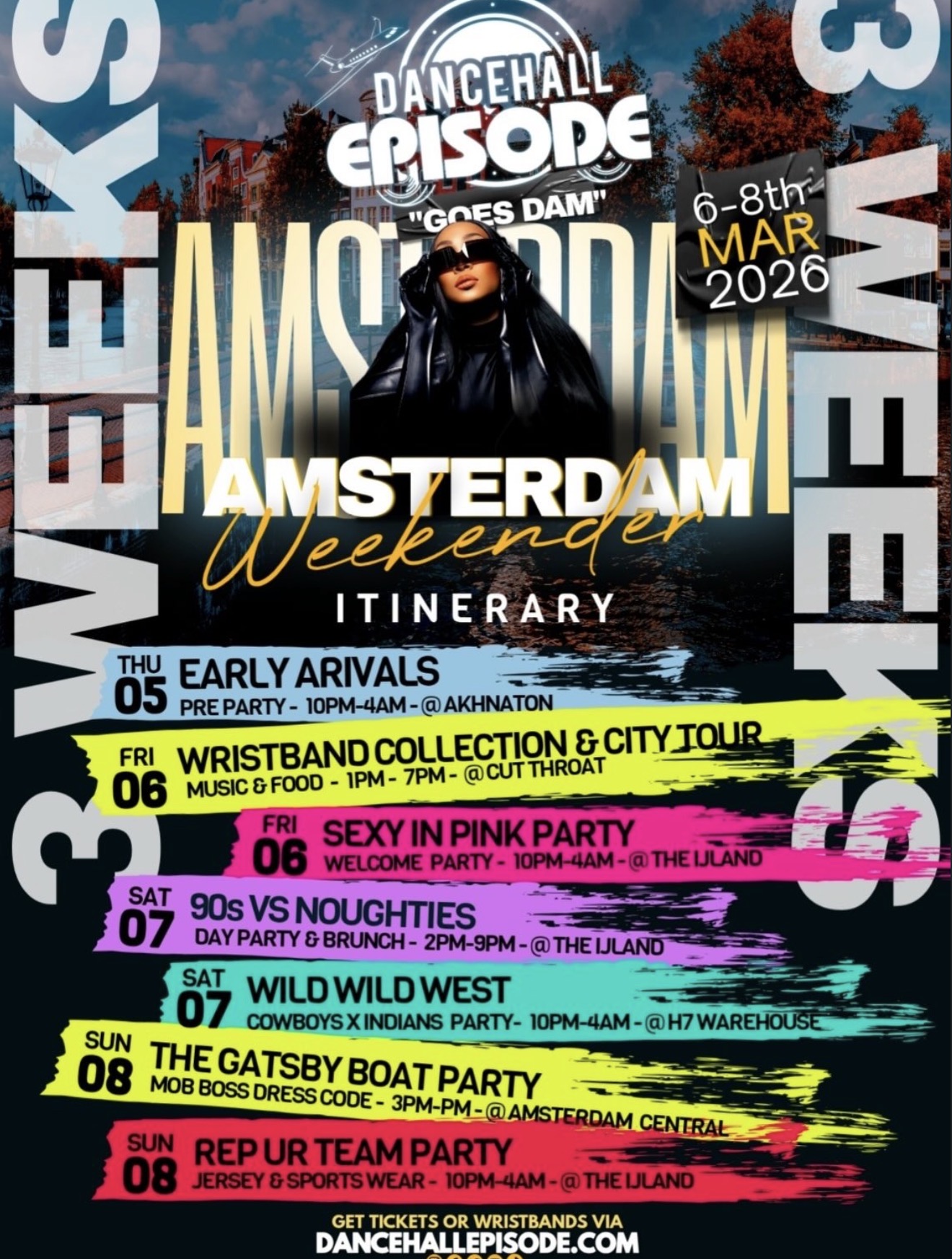 Expect top European and international DJs playing the best in Dancehall, Reggae, Soca, Afro beats, Old & New School R&B, Hip-Hop, Garage and Party Classics and live performances from widely known international artists and dancers!!