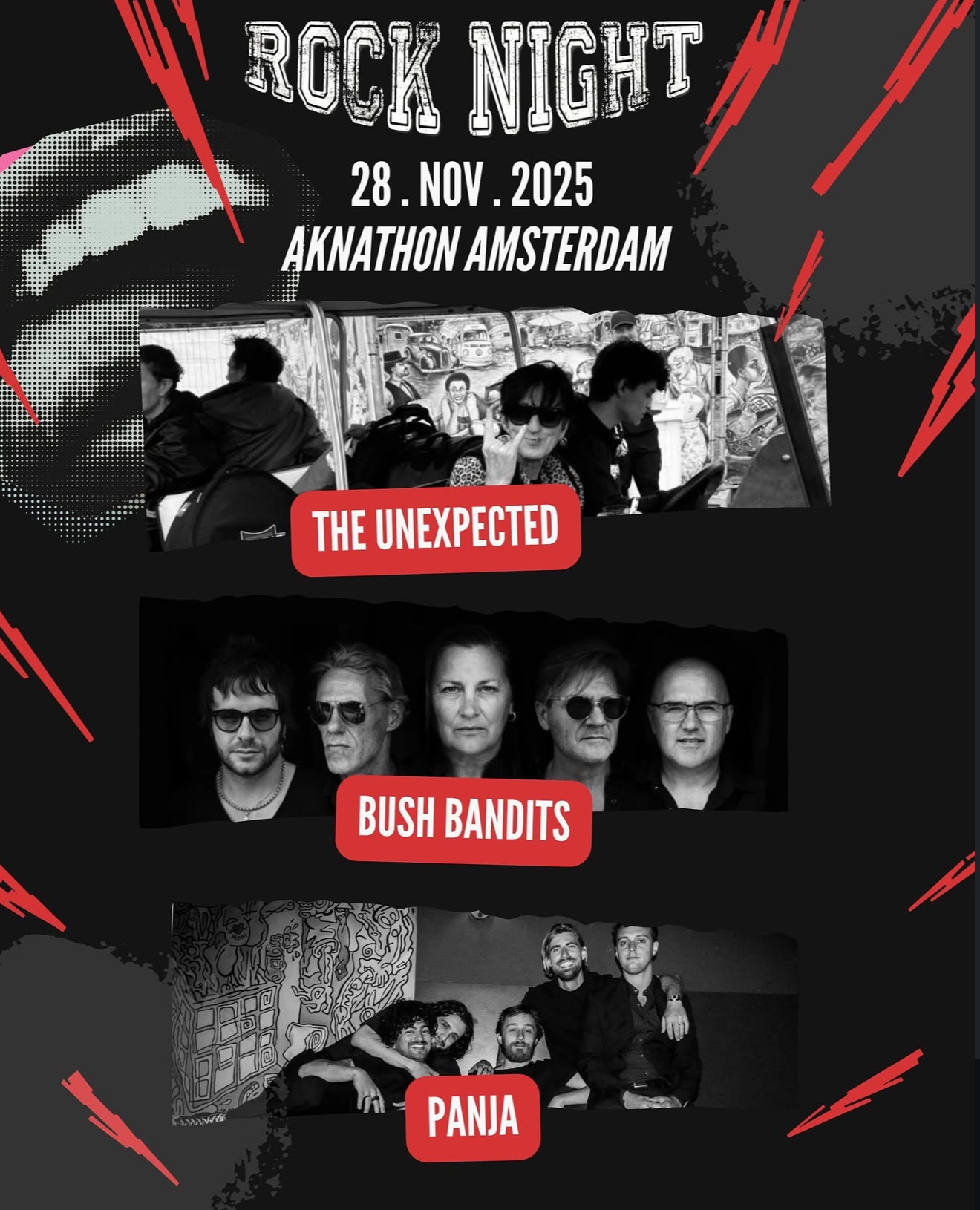 Rock night is returning to Akhnaton with their monthly event! This time the line up includes the bands: The unexpected, The bush bandits and Panja!Come by, drink a beer and rock out with us!tickets are also available at the door