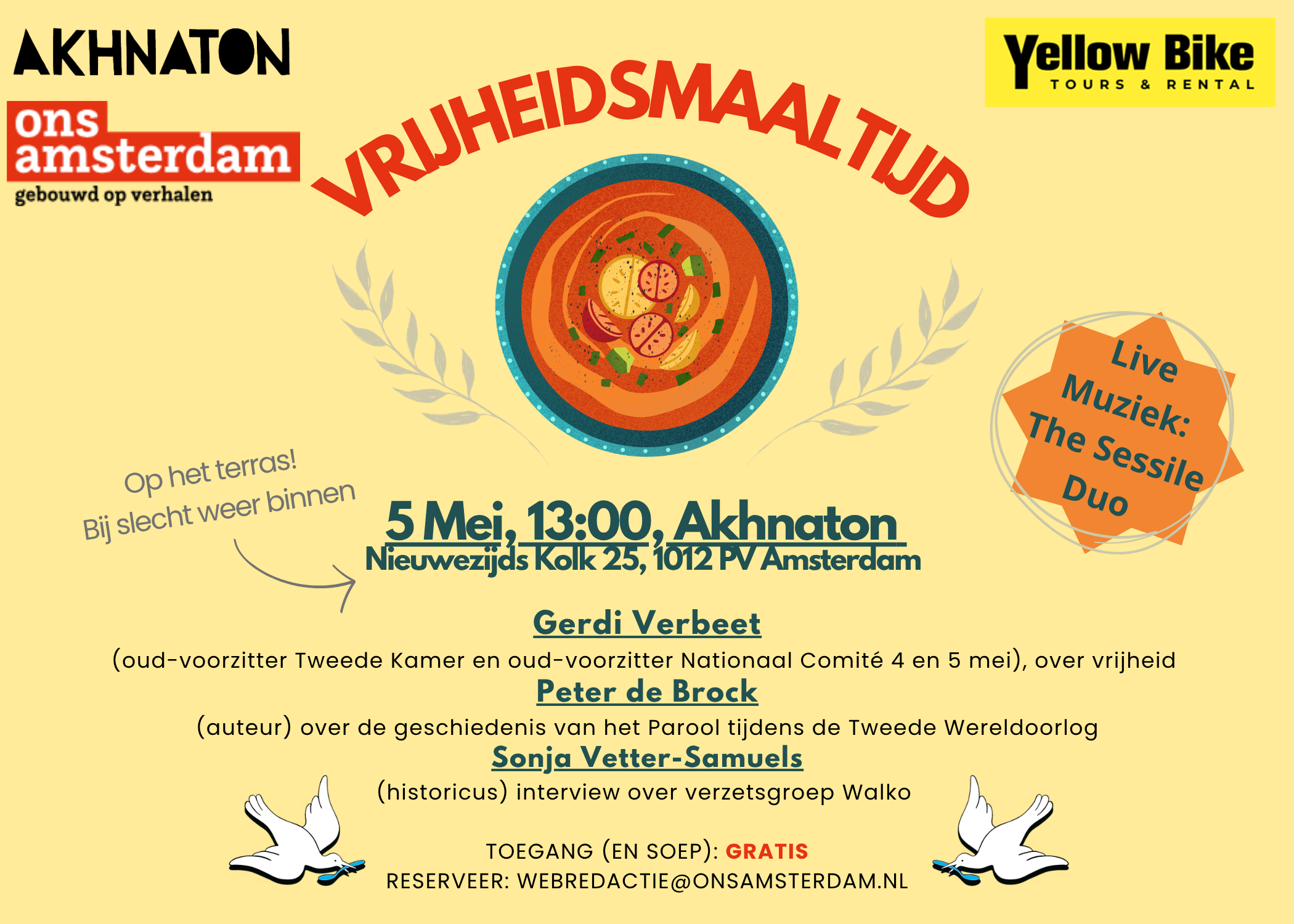 Ook dit jaar organiseert Ons Amsterdam weer samen met YellowBike en Akhnaton een Vrijheidsmaaltijd op 5 mei!